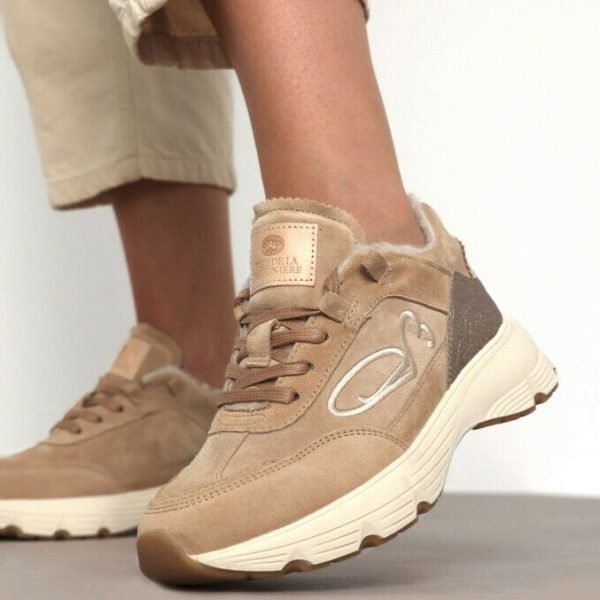 FRED DE LA BRETONIERE sneaker, beige suede met teddy voering.
