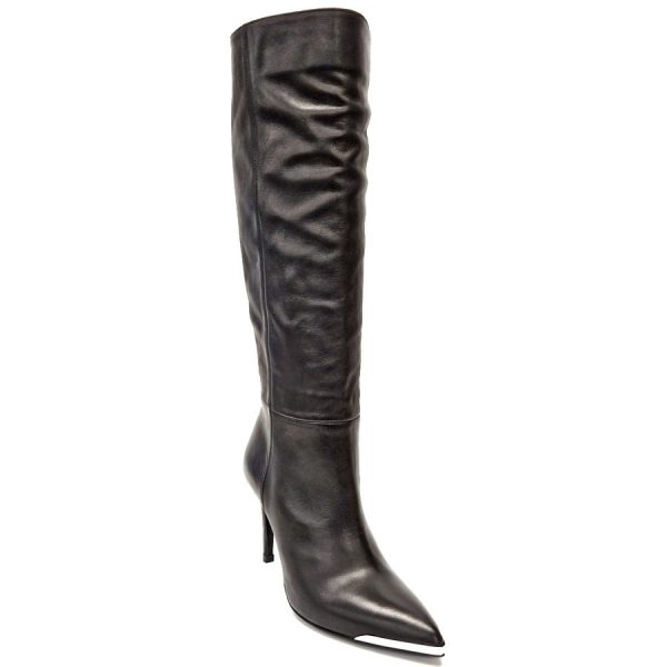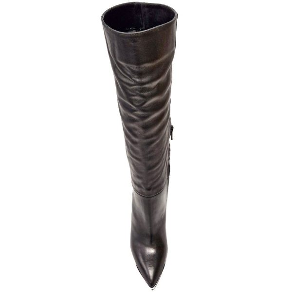 ALBANO lange laars, zwart leer met zilverkleurige voorkant