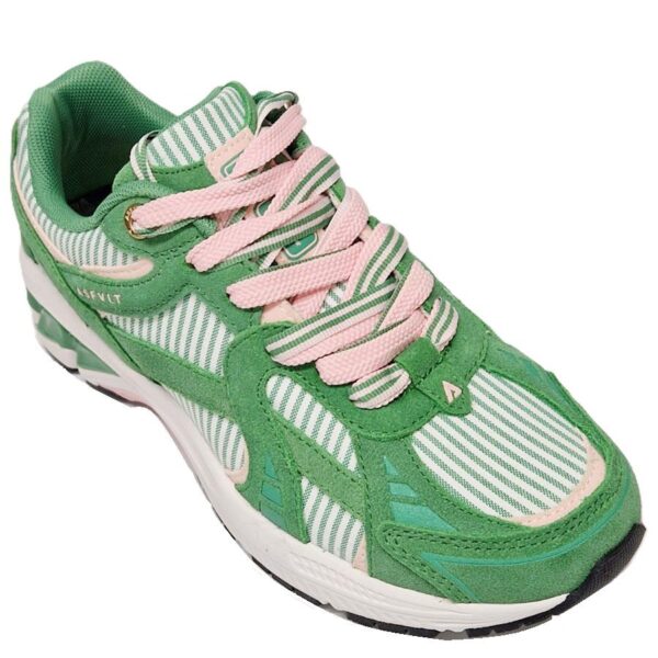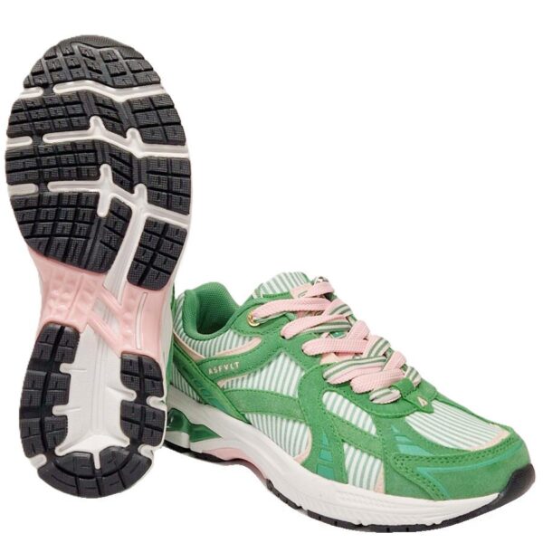 ASFVLT sneaker, groen roze extra groene veter toegevoegd. PASVORM: normaal op maat.