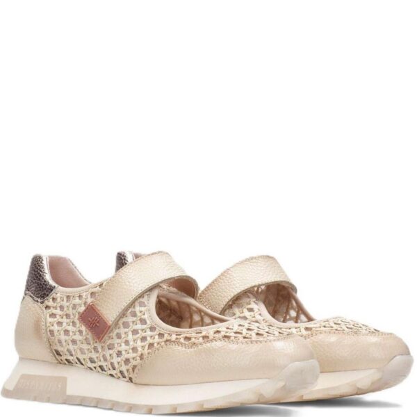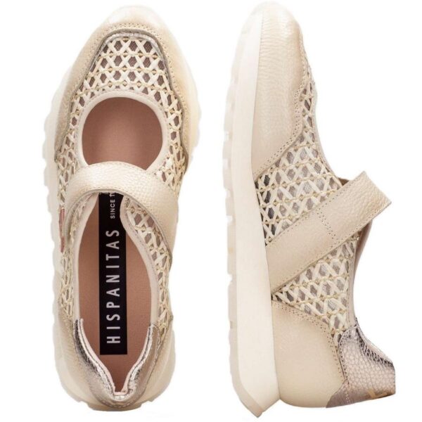 HISPANITAS ballerina, beige leer/raffia met klittenband