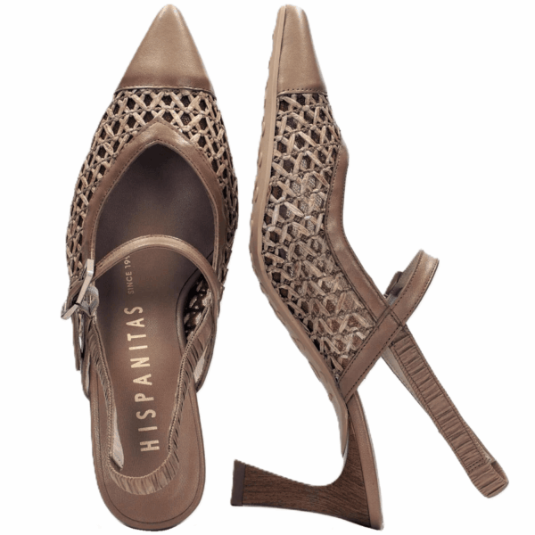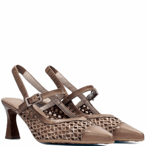 HISPANITAS slingback pump 7 cm, bruin leer/raffia