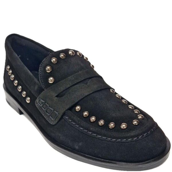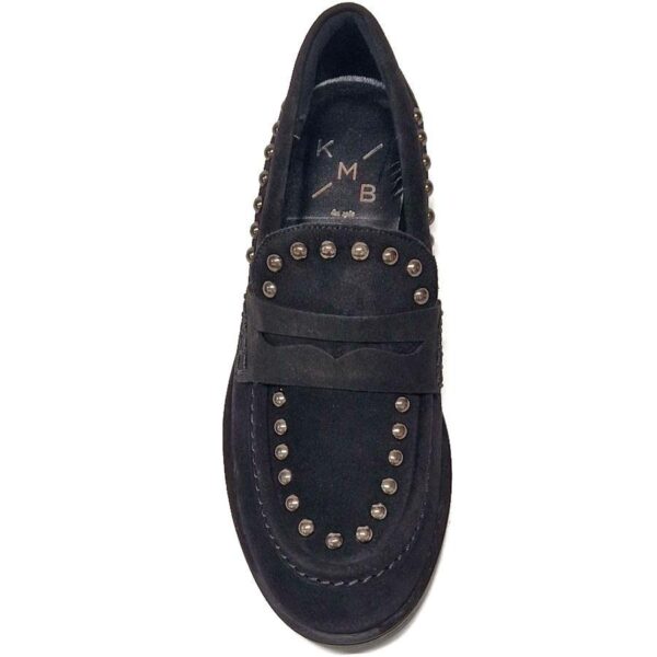 KMB loafer, zwart suede met donkere studs