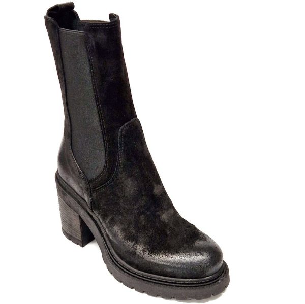 METISSE blokhak laarsje, zwart suede vintage