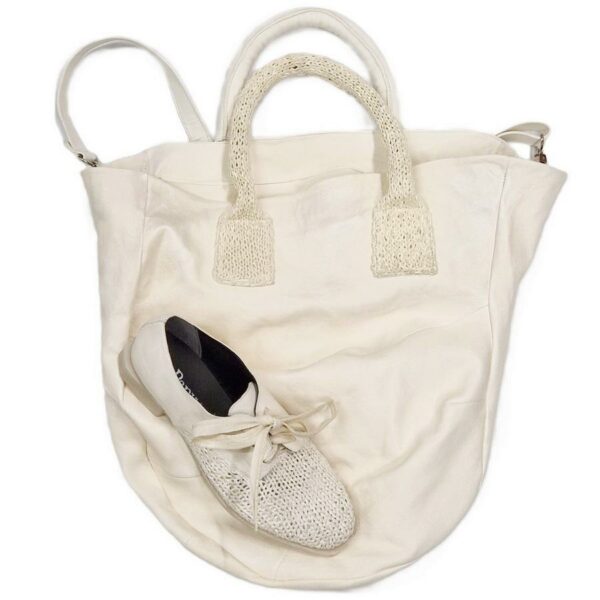 PAPUCEI beige leer/vlecht leer