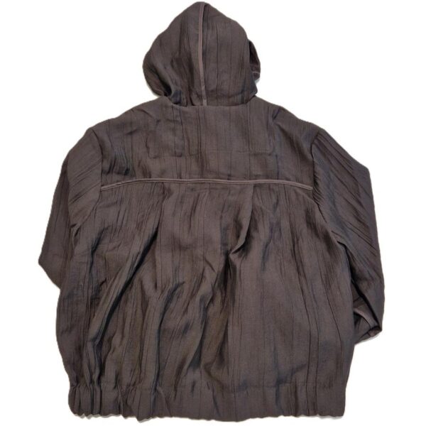 PAPUCEI jas, zwart stof met leren zakken. Pasvorm: valt groot uit.