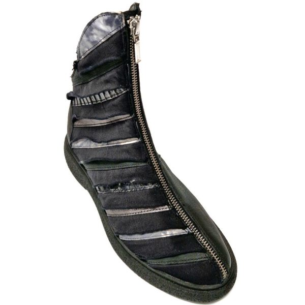 PAPUCEI wreef rits boot, stof/leer zwart grijs