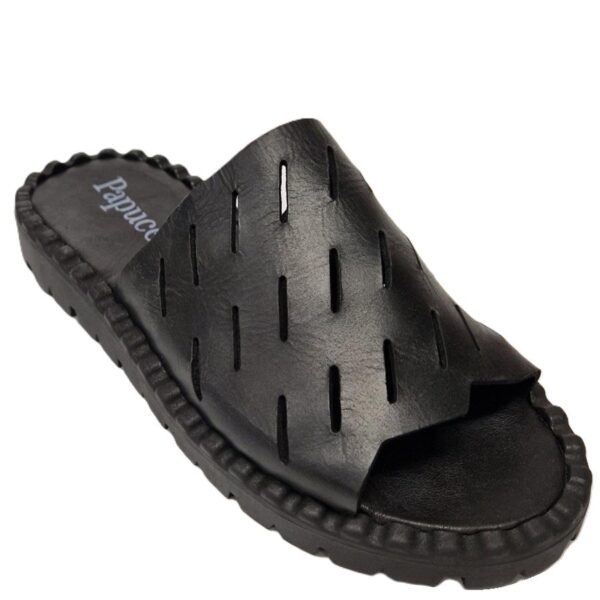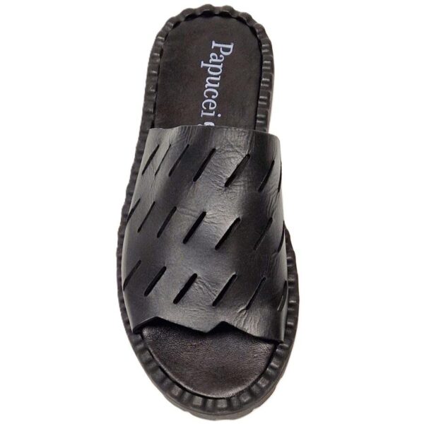 PAPUCEI slipper, zwart leer. evt. tas in het zelfde materiaal verkrijgbaar.