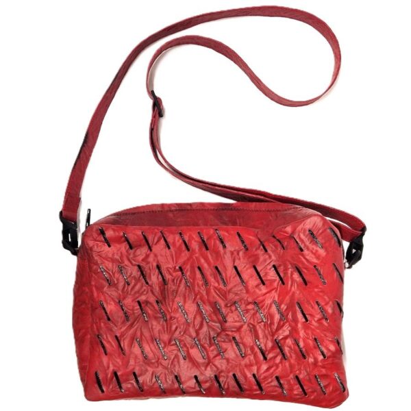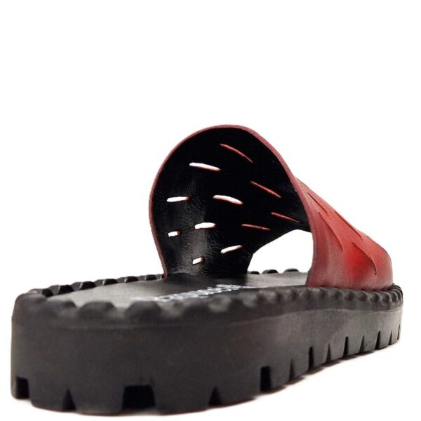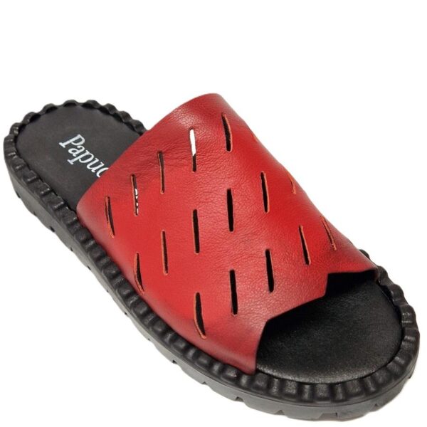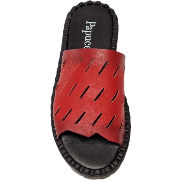 PAPUCEI slipper, rood leer. evt. tas in het zelfde materiaal verkrijgbaar.