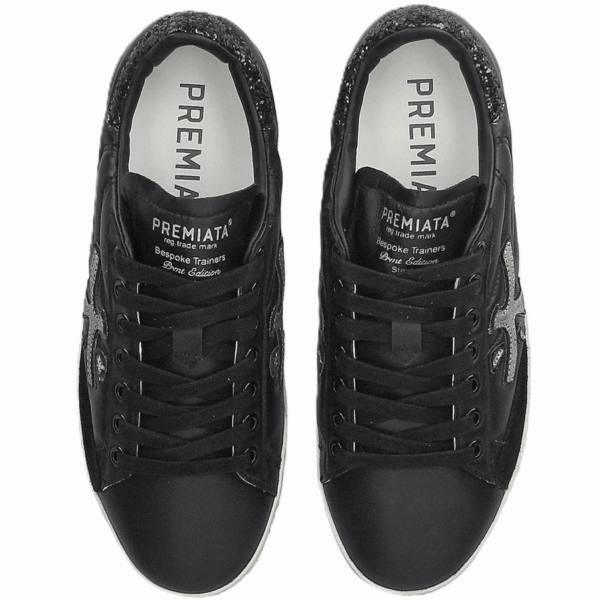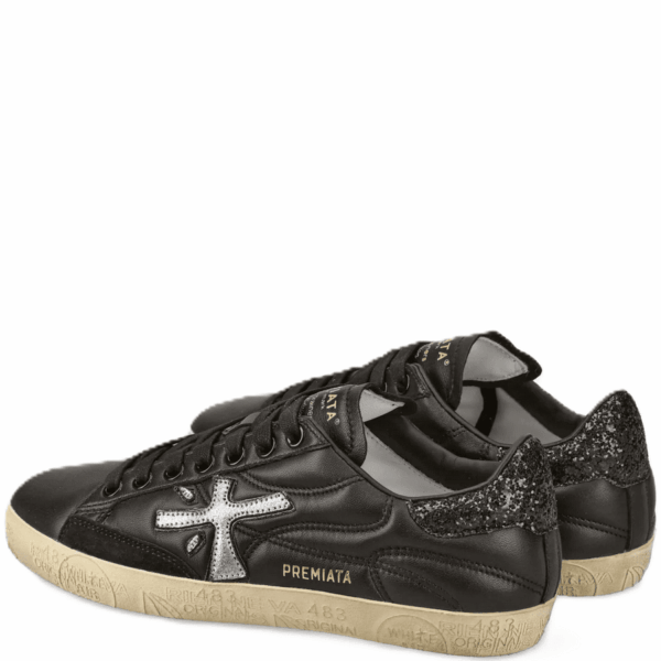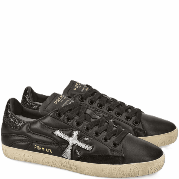 De Premiata STEVEND 7614 damessneakers vallen op door hun verfijnde en moderne design, ideaal voor wie op zoek is naar een vleugje onderscheid in zijn dagelijkse stijl. Ze zijn uitgevoerd in soepel en zacht zwart leer en voorzien van zilveren en zwart accenten die glans en persoonlijkheid toevoegen zonder de kenmerkende minimalistische essentie van Premiata te verliezen. Het urban silhouet combineert hoogwaardige materialen met een lichtgewicht zool, voor comfort en duurzaamheid bij elke stap. Een model dat mode en een eigentijdse uitstraling combineert in een veelzijdige sneaker met een eigen, uniek karakter.