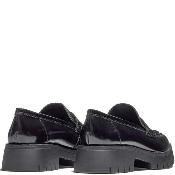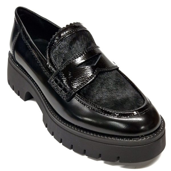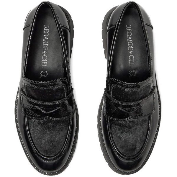REGARDE LE CIEL loafer, zwart lak met pony look