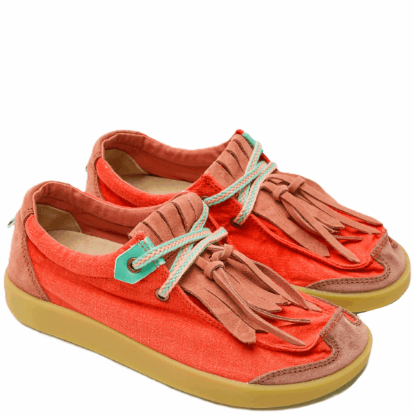 SATORISAN veterschoentje, rood canvas / suede