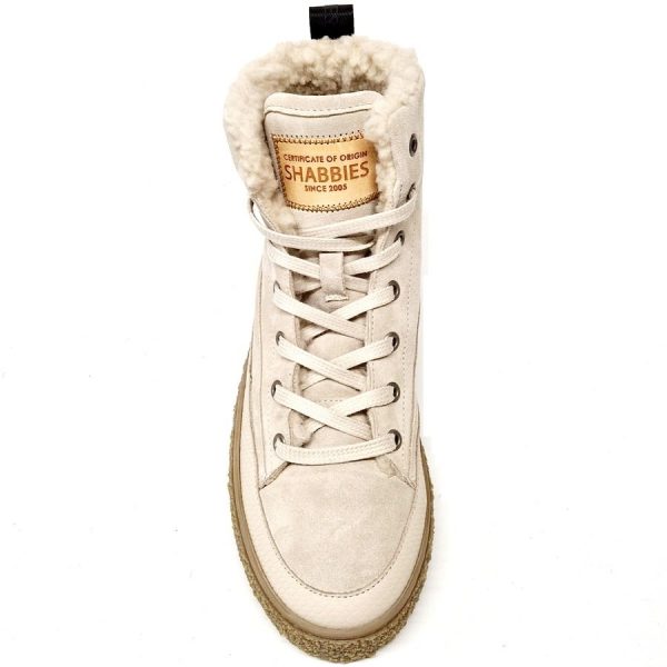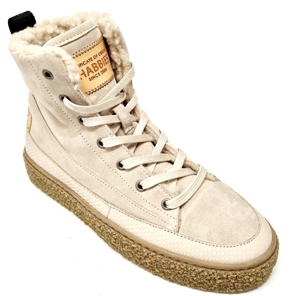 SHABBIES halfhoge sneaker met teddy/leren voering, zand suede/geprint leer