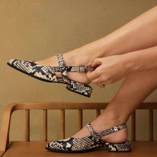 VIA VAI slingback, snake zwart beige leer