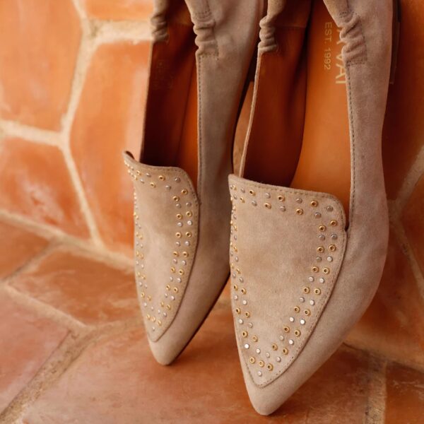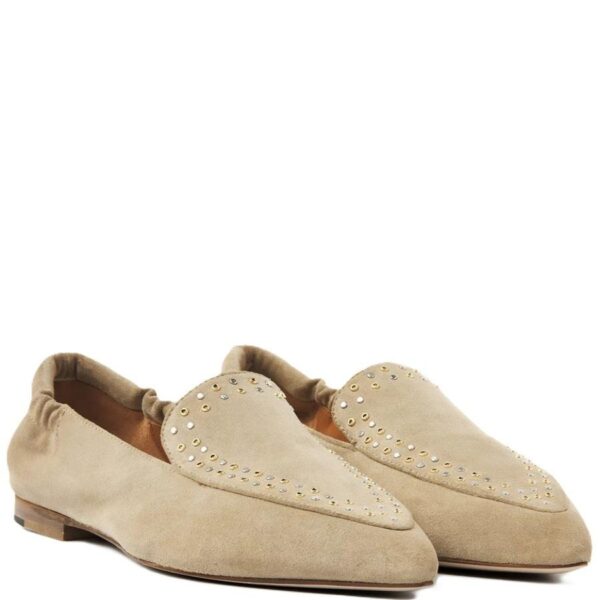 VIA VAI loafer, beige suede met goud/zilveren studs